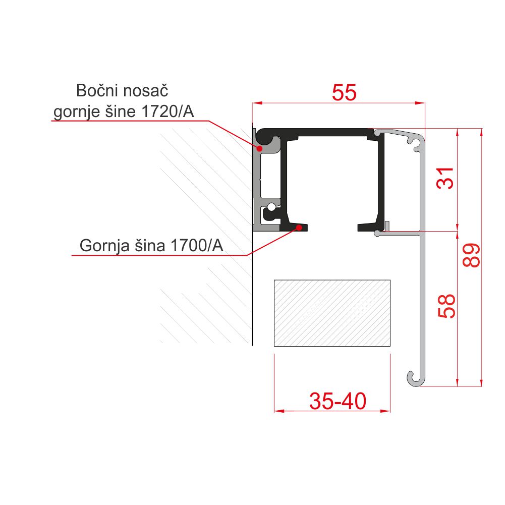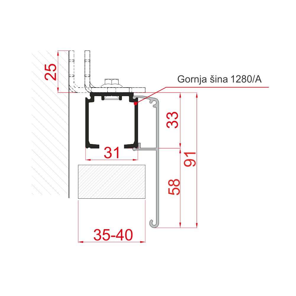 Dekorativna aluminijumska maska za koja se postavlja na gornje TS 1280 i TS 1700 šine, prilikom izrade pregradnih vrata.